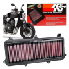 • O filtro K&N aumenta a performance do motor devido á maior penetração de ar, propiciado pelo seu design especial diferenciado, que permite uma maior circulação de ar, mínima restrição e máxima filtragem. É o único no mundo, que usa uma malha de algodão embebida em óleo de 1º qualidade que se encontra entre diversas malhas. Os filtros consistem em quatro a seis folhas de tecido do algodão mergulhadas entre duas folhas do engranzamento de fio de alumínio.