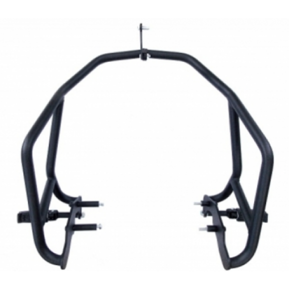 Desenvolvido em tubo redondo 1’’ espessura de 1,9 mm e chapa 6,3 mm, acabamento pintura eletrostática pó preto fosco, acompanha espaçadores, parafusos, jogo de proteção plástica e pedaleiras removíveis.