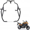 Produzido em tubo redondo 1'' com espessura de 2 mm; acabamento com pintura eletrostática preto fosco; acompanha suporte, parafusos, porcas, espaçadores para fixação, jogo proteção plástica e pedaleiras.